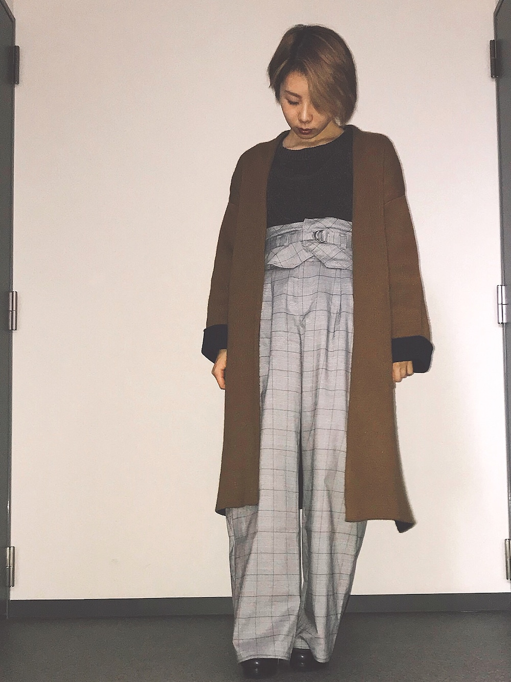 anのその他パンツ「コルセット付きグレンチェックワイドパンツ」を使ったコーディネート