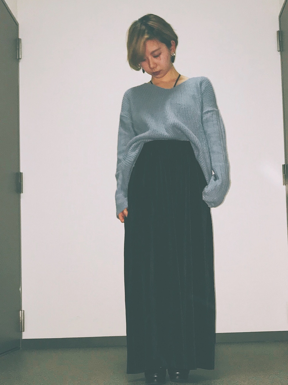 anのニット/セーター「【BACK NUMBER】シャギーVネックニット」を使ったコーディネート