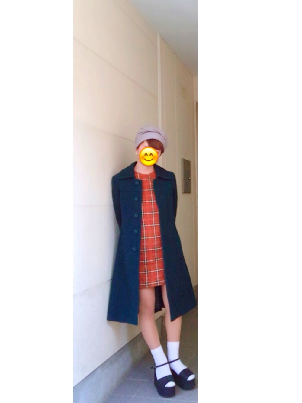 anのワンピース「フォルムチェックワンピース」を使ったコーディネート