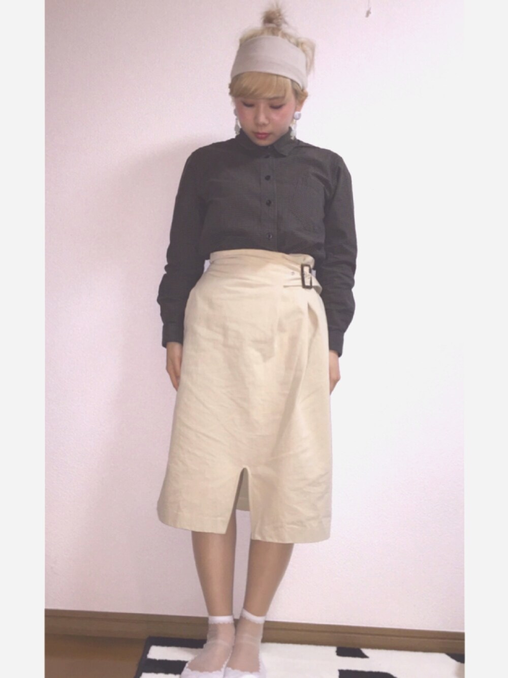 シャツ / MHL. 靴下 / 靴下屋 ピアス、ヘアバンド / lattice
