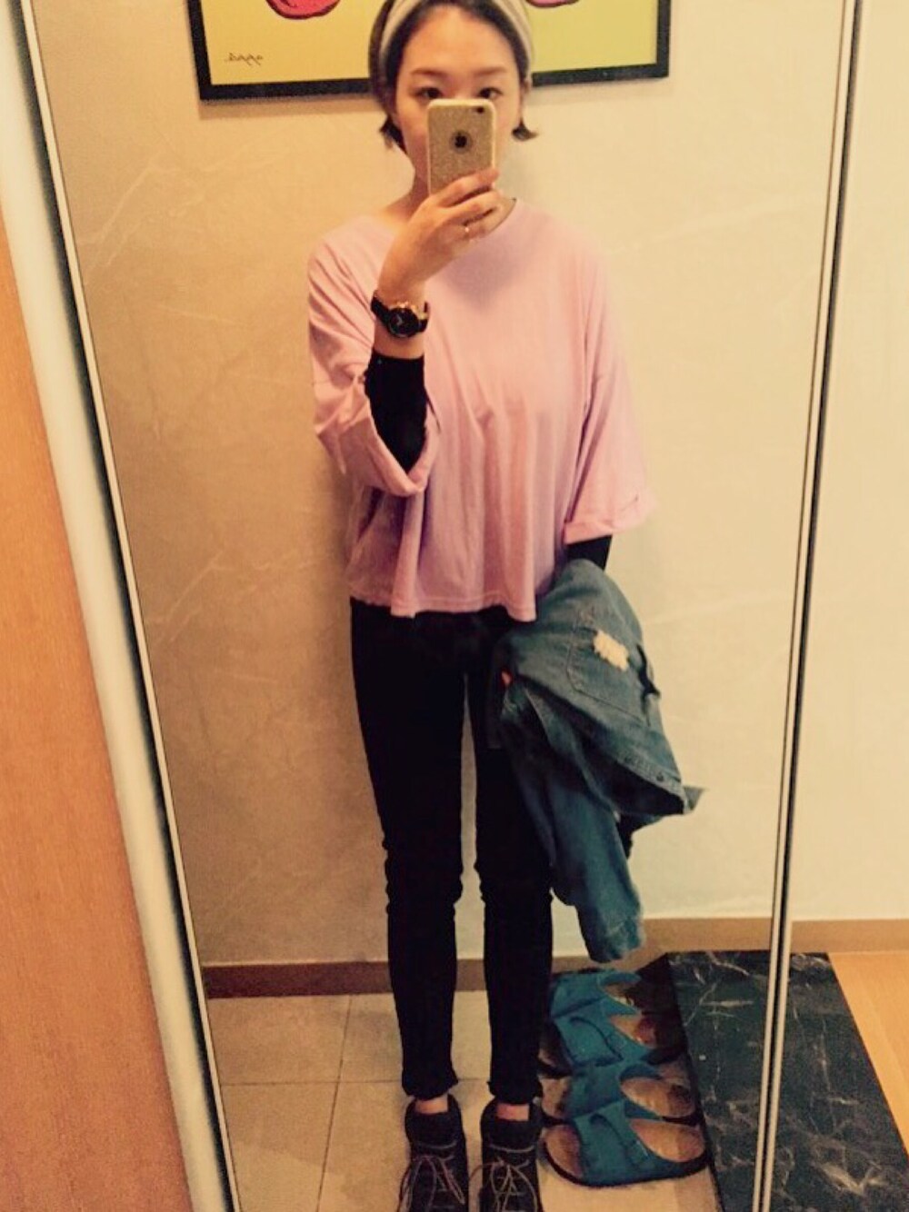 妊娠5ヶ月 だいぶお腹が出ましたので、Tシャツが短くなりましたが(笑)色が可愛いから購入!!!!😆