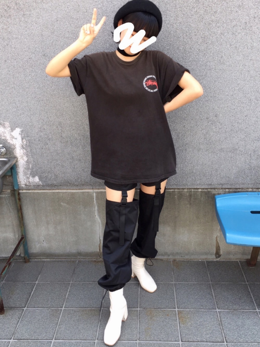 STUSSYのTシャツはお父のお下がり♡ そしてまたまた白のショートブーツ登場!☆ 本日はこんな感じで学校行きました🤍毎日登校投稿目指します🔥💫