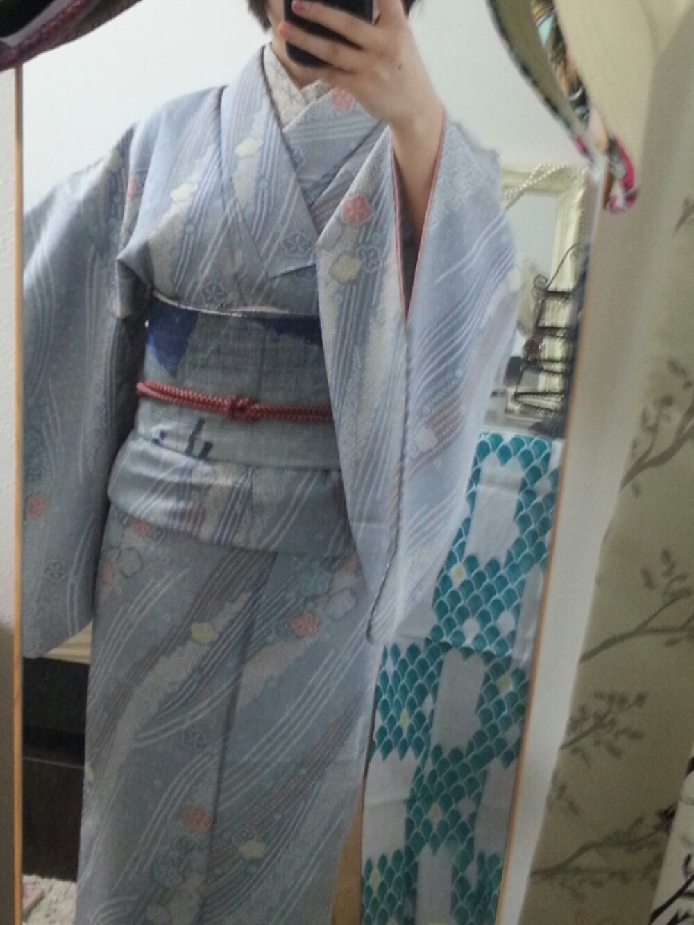 レースみたいな柄の端切れを半衿にしてみた。 この帯してるとよく誉められる
