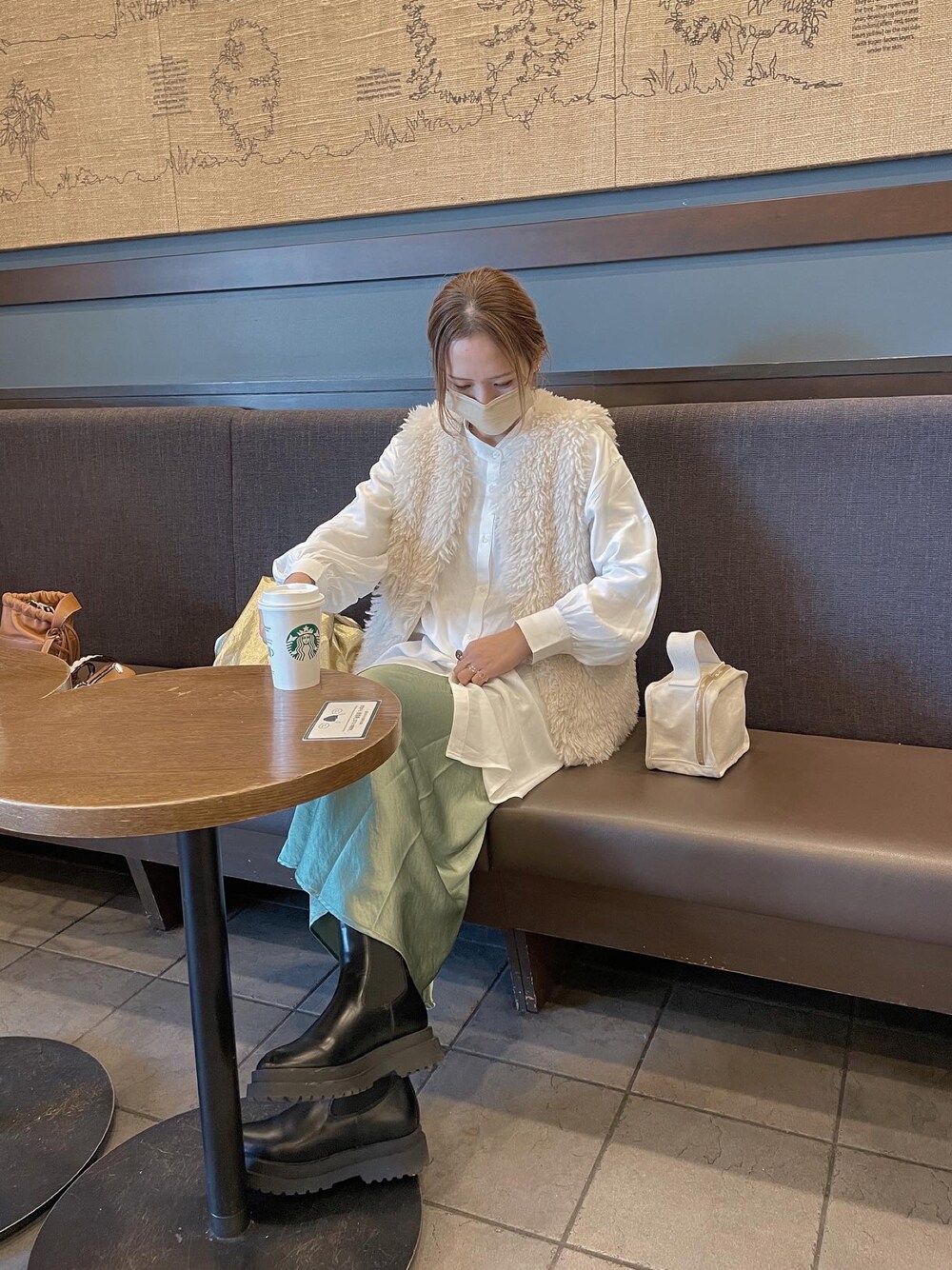 lllmoiyのベスト「フェイクファーベスト」を使ったコーディネート