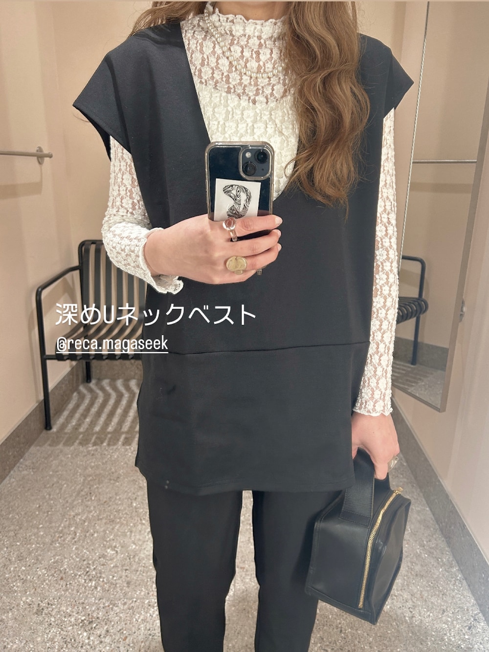 lllmoiyのベスト「深Vネックベスト」を使ったコーディネート