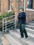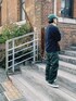 グリーンベースのコーデでその他の色は黒だけにして統一感を意識したコーデにしてます!
