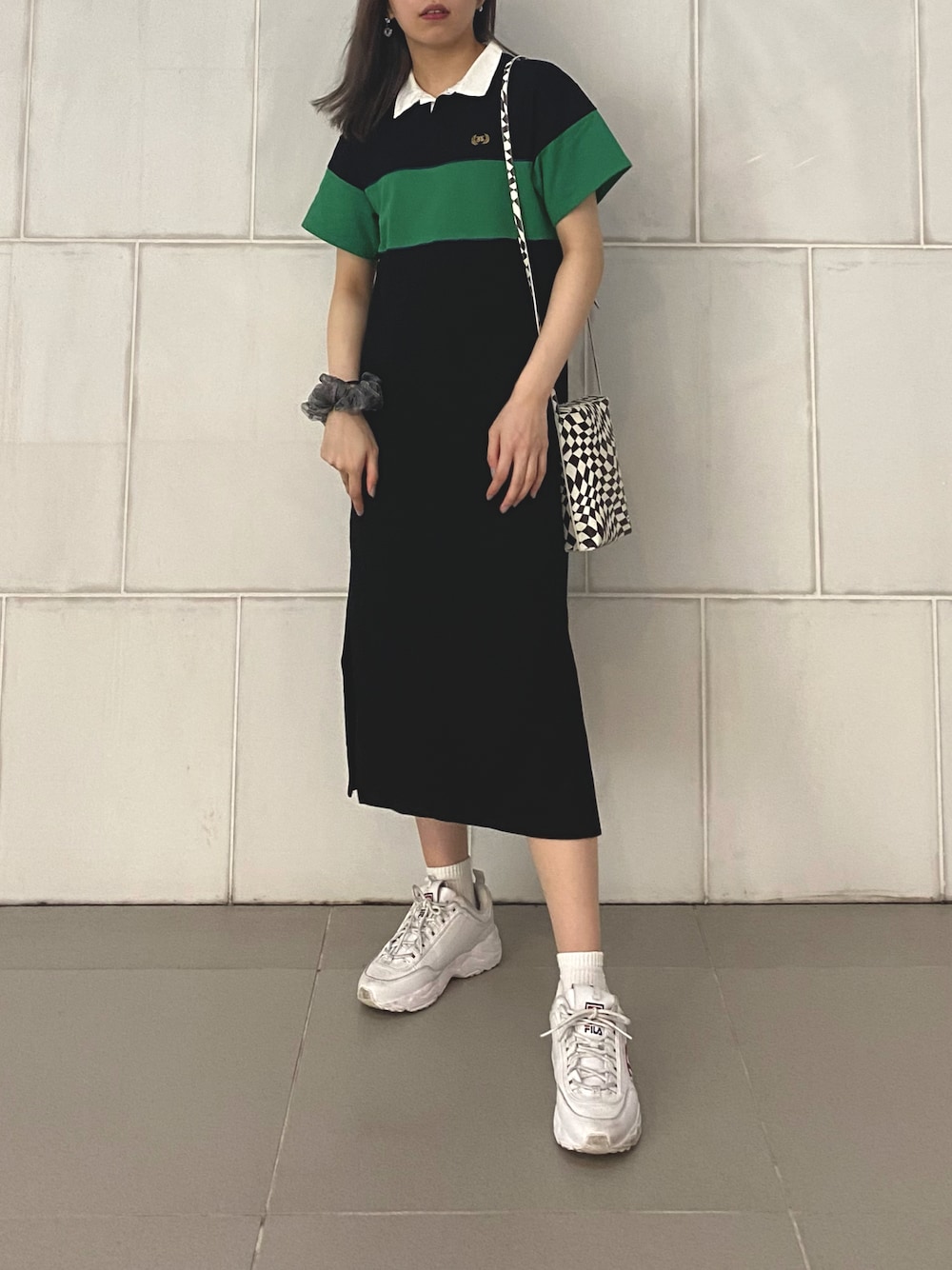 ラフなワンピーススタイル!✨ すごく着やすくてそれであって周りと全然被らないデザインのワンピース! カラー配色がスリザリンぽいのも個人的ポイント🐍 サイドにスリットが入っていて歩きやすいです! 丈感164cmだと膝半分くらいでした🎶 スニーカーを合わせたけどブーツスタイルもありだと思います!