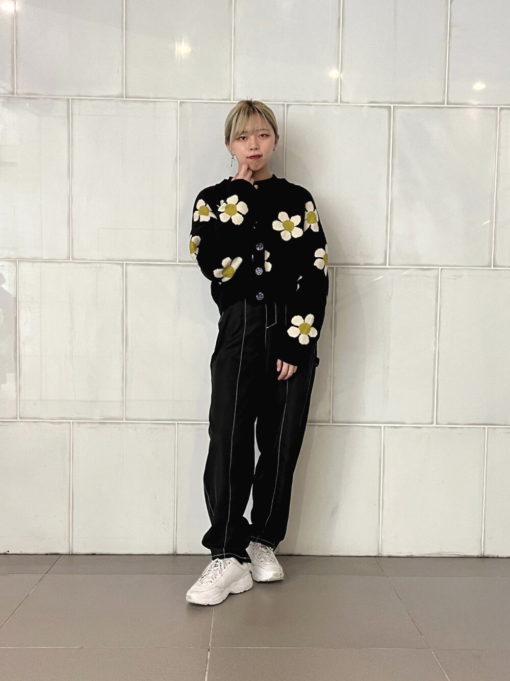 フラワーニットとブラックのパンツを合わせて オールブラックコーデしてみました! 柄があることによりそちらに目線がいくのも特徴です。🌼 素材感が柔らかくて全然毛玉つかないのでこちらお勧めです! ちなみにANNA SUIコラボのカーディガンが似た素材感なのでこちらの形が気になる方ぜひチェックしてみてください!