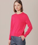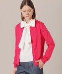 鮮やかな色のニットアンサンブルは選りすぐりの素材を使用した上品な光沢感としっとり滑らかな肌触りが特徴です。 メタルボタンも華やかで様々なスタイリングのアクセントになります。