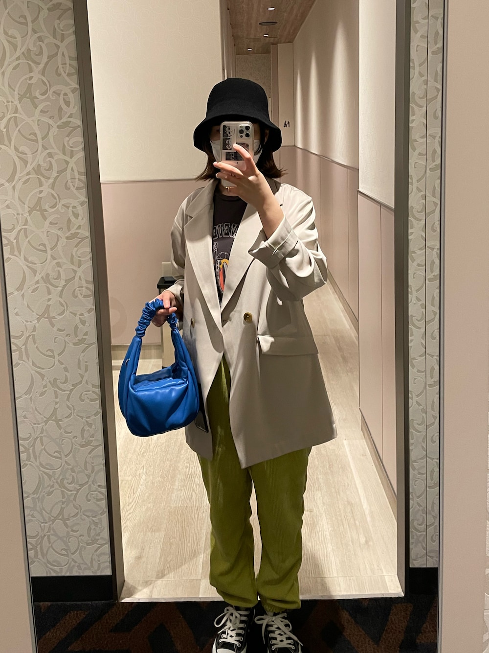 テーラードジャケットを羽織って 大人っぽさを出しつつ 色味も入れて遊んでみました🌼💙