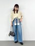 身長:163cm 体型:普通/骨格ナチュラル 普段着用サイズ:上下Mサイズ 着用サイズ ロンT:フリー トップス:フリー ボトムス:M 着用感 ロンT:ややゆとりあり トップス:2wayで着られるニットプルオーバー 体型カバーが叶うロング丈で、袖口がコンパクトになってメリハリがあり一枚で様になるアイテムです。 ハンドウォッシャブル可能◎ ボトムス:ややゆとりあり ウエストゴムで柔らかい履き心地。 全体的にストレッチがとても効くので動きやすく、デニム特有の硬さがないのが人気ポイント。