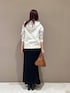 身長:163cm 体型:普通/骨格ナチュラル 普段着用サイズ:上下Mサイズ 着用サイズ トップス:M ボトムス:M 着用感 トップス:ややコンパクトなサイズ感。丈感もスッキリめでワイドパンツやフレアスカートなどどんなボトムスとも合わせて着やすい形です。 ボトムス:ややゆとりあり。丈感やや長め。 ウエストゴムで楽な履き心地です。