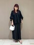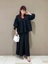身長:163cm 体型:普通/骨格ナチュラル 普段着用サイズ:上下Mサイズ 着用サイズ トップス:M ボトムス:フリー 着用感 トップス:ゆったりめ、袖周りにボリュームあり、前後2wayで着用していただけます。 ボトムス:ややゆとりあり