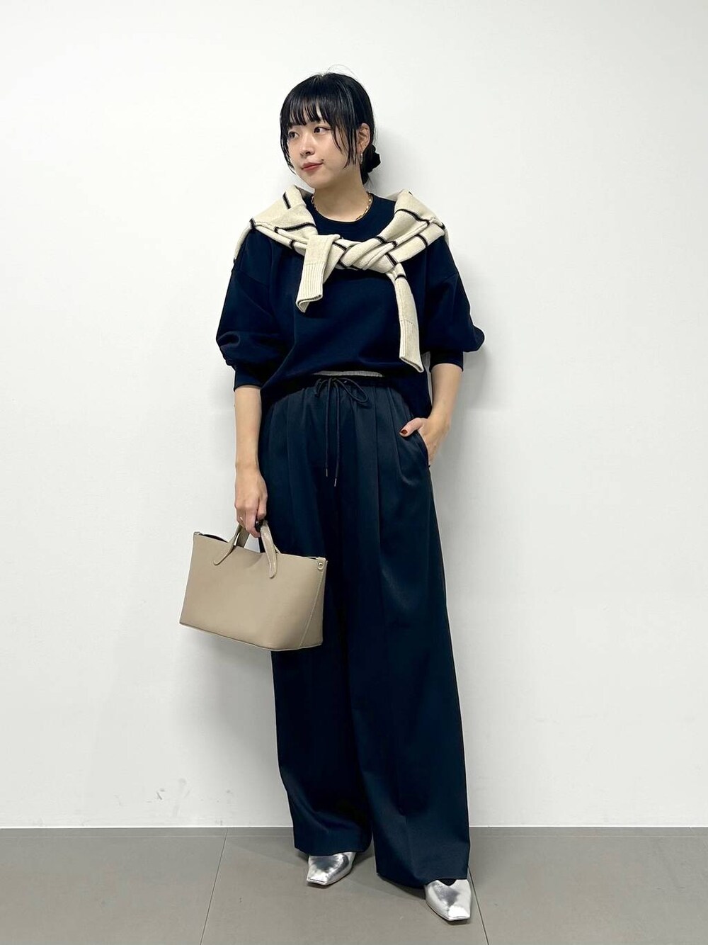 身長:163cm / 骨格ナチュラル 普段着用サイズ:上下Mサイズ 着用サイズ ボトムス:M 着用感 ボトムス:ややゆったり、ウエストゴム