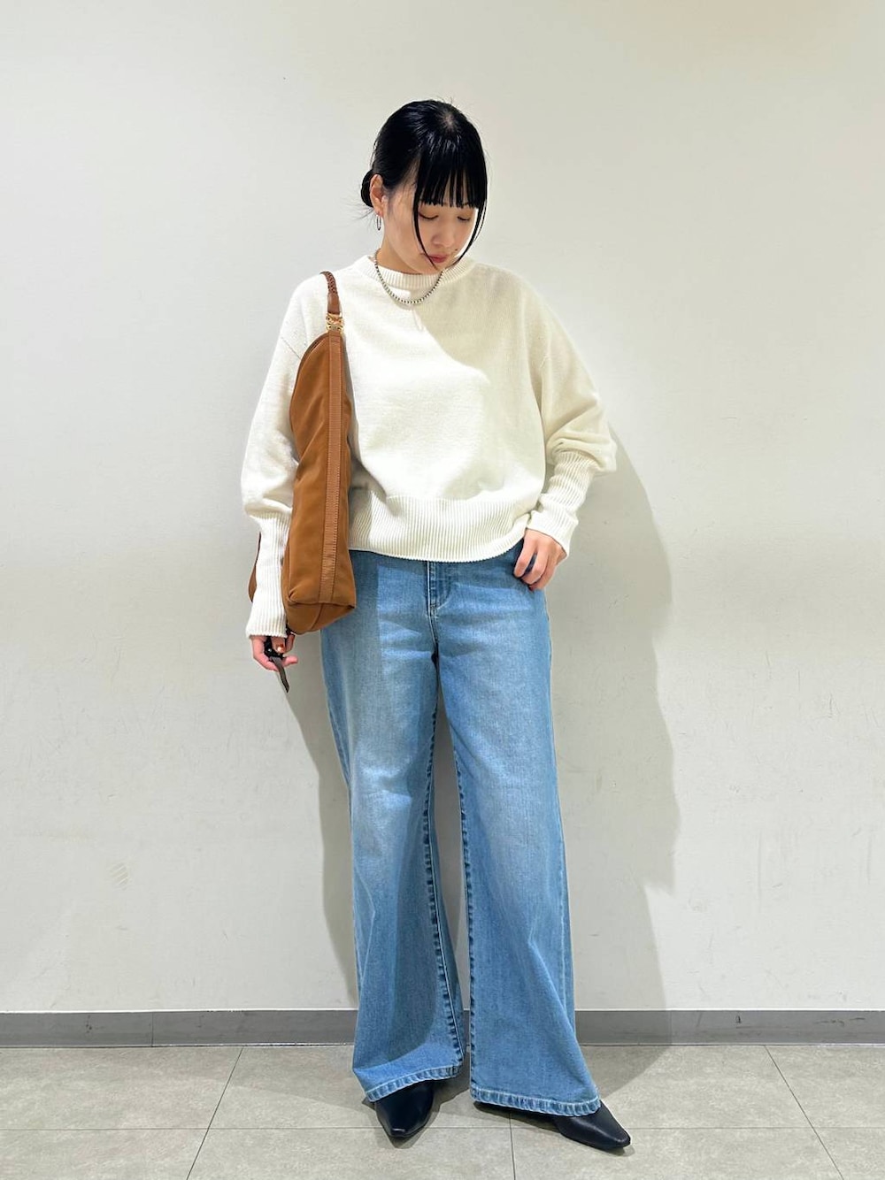 身長:163cm / 骨格ナチュラル 普段着用サイズ:上下Mサイズ 着用サイズ トップス:フリー ボトムス:M 着用感 トップス:ややゆとりあり ボトムス:標準的