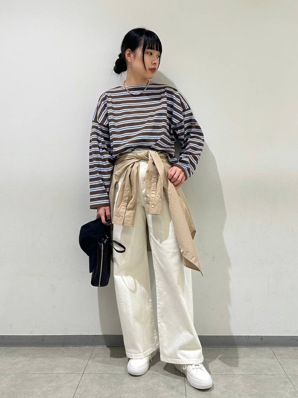 身長:163cm / 骨格ナチュラル 普段着用サイズ:上下Mサイズ 着用サイズ トップス:フリー ボトムス:M 着用感 トップス:ややゆとりあり ボトムス:標準的