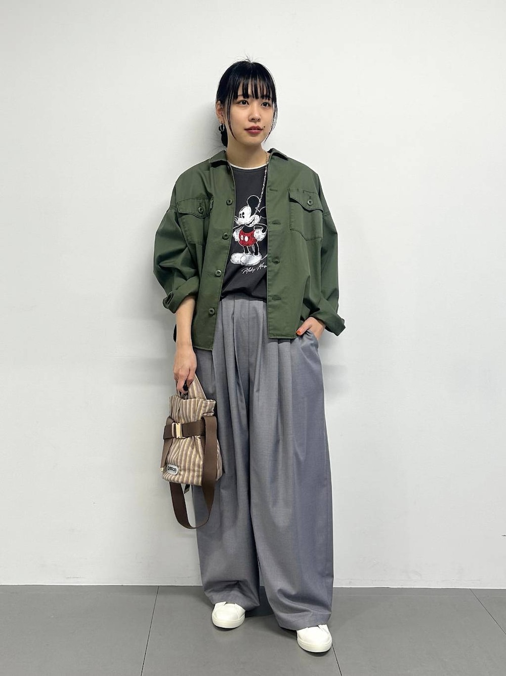 着用サイズ Tシャツ:フリー アウター:M パンツ:M 着用感 Tシャツ:ややゆとりあり アウター:ややゆとりあり パンツ:ややゆったりめ
