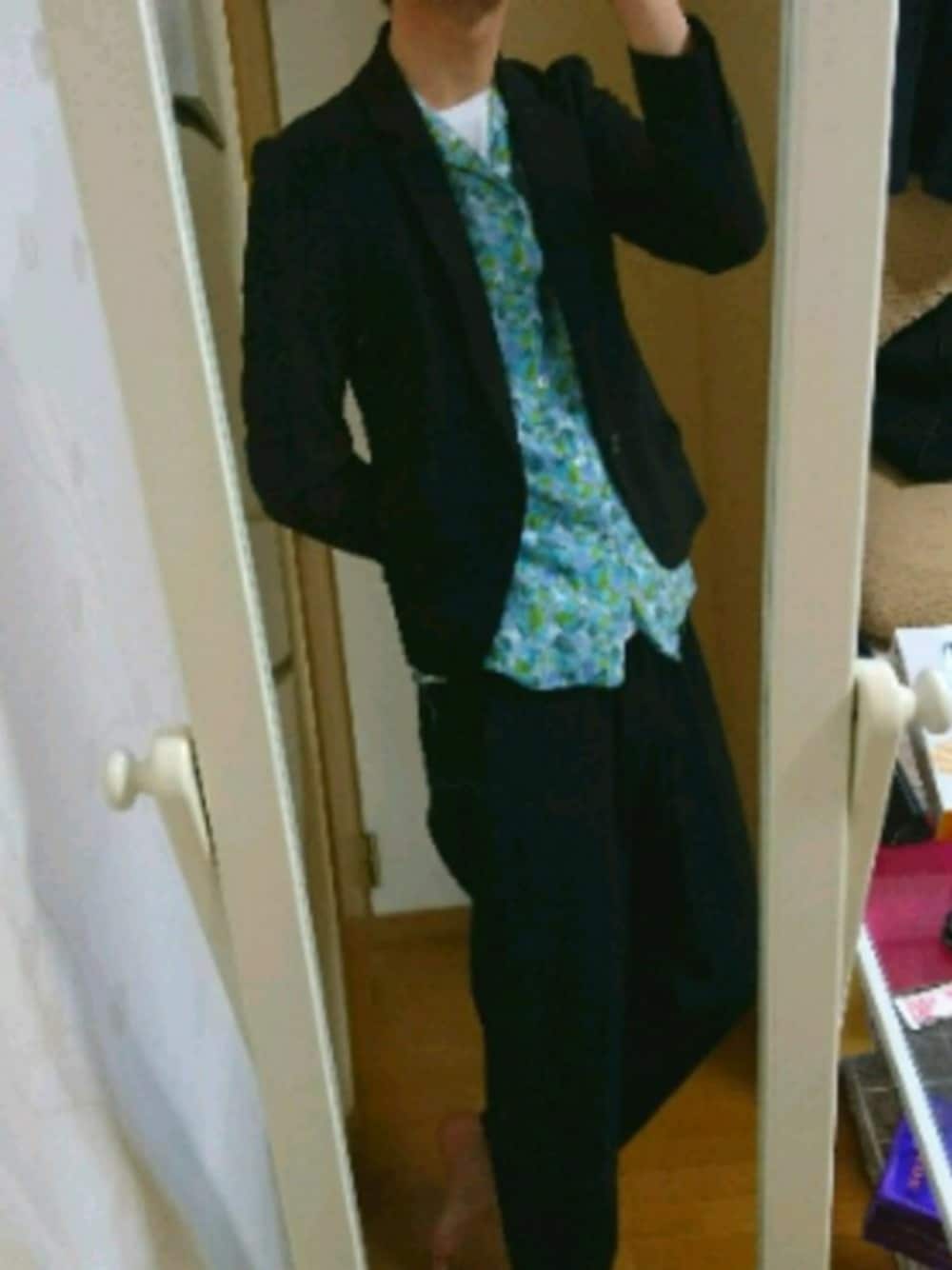 ジャケット:Sサイズ シャツ:Mサイズ パンツ:不明 ジャケットにオープンカラーシャツやばいね。 では仕事してきます♪