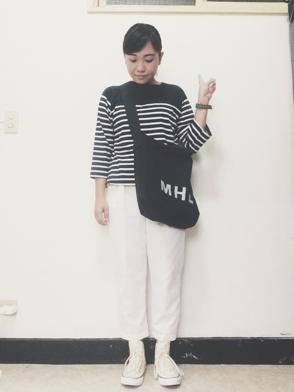LO1OのTシャツ/カットソー「コットンボーダーユルプルオーバーロングスリーブ 568163」を使ったコーディネート