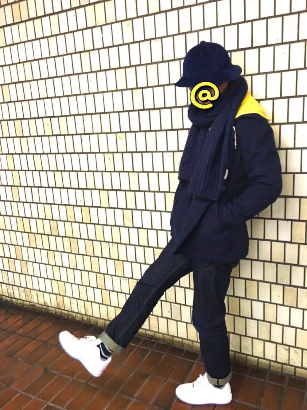 localメンバー全員揃っての飲み会終わりの ほろ酔い気分での撮影! 白×ネイビー×黄色の3色コーデ!