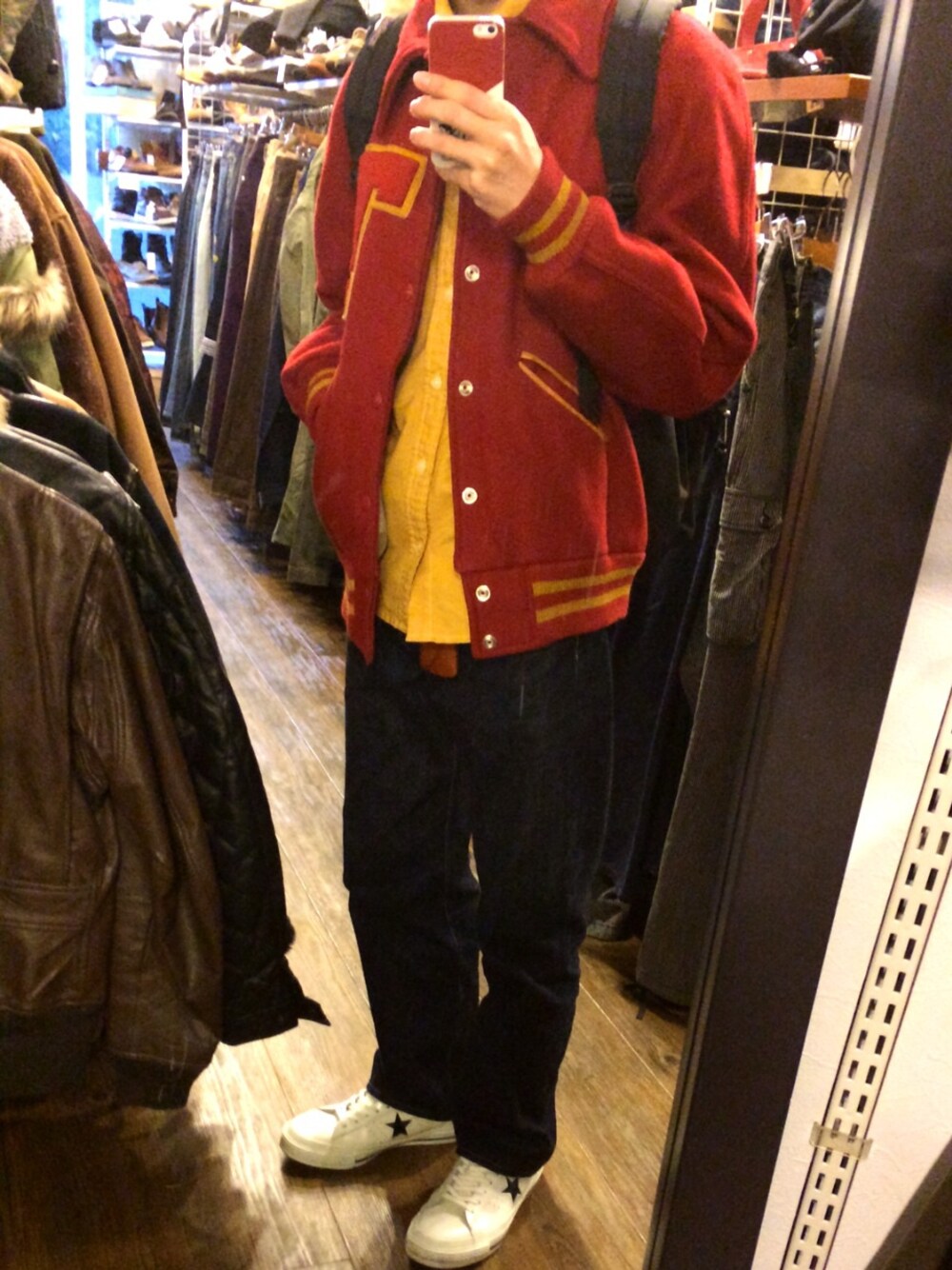 古着のスタジャンとからし色のラルフのシャツを合わせました スタジャンもシャツも発色が良くてお気に入りです!