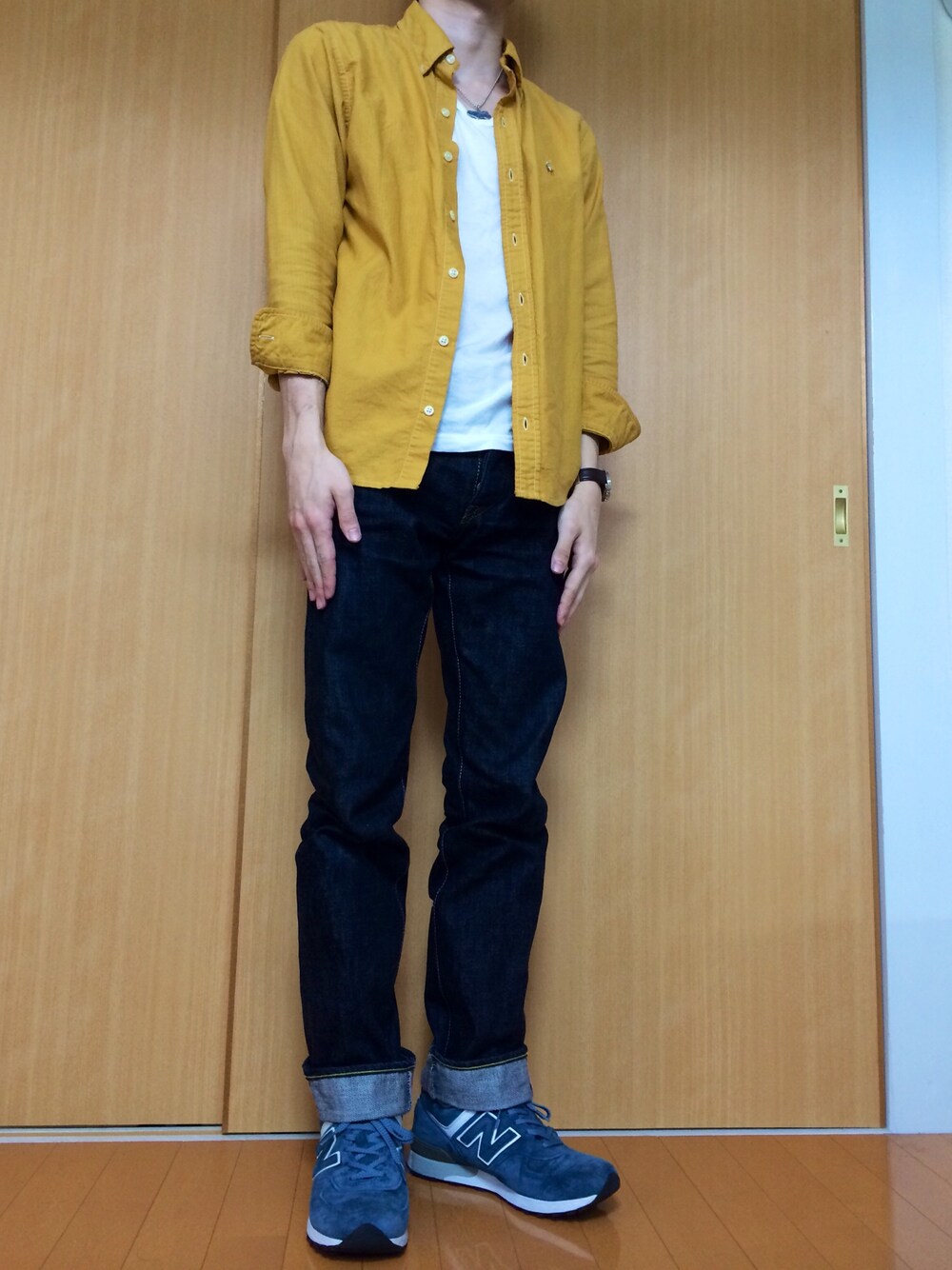 古着のラルフのシャツを軽く羽織ってネックレスを付けてみました。 ニューバランス576は本当に歩きやすいです!