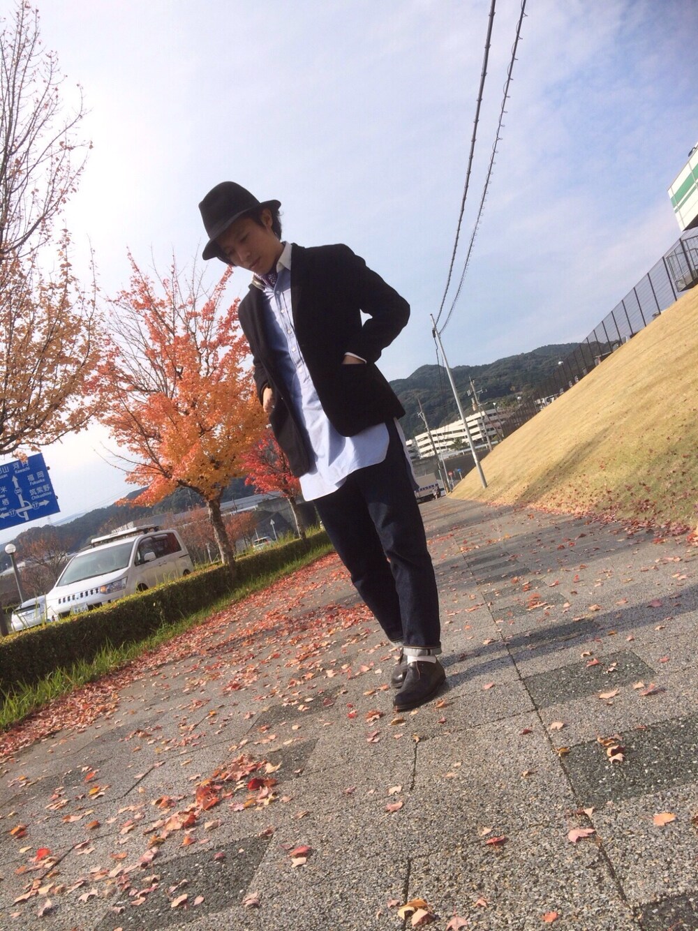 フランクリンテーラードの上品なロングシャツを EGのジャケットとボンクラのデニムで崩して サイドクォークの革靴で締めました😁