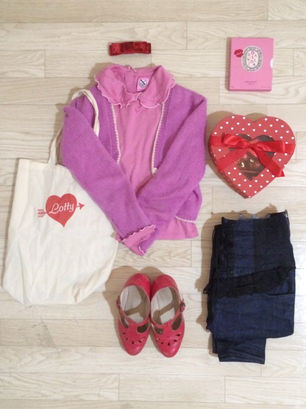 PINK × RED とLOTTYのハートbagでバレンタインチックに❤️💗 アウターはレオパードのファーコートでした◟̊◞̊