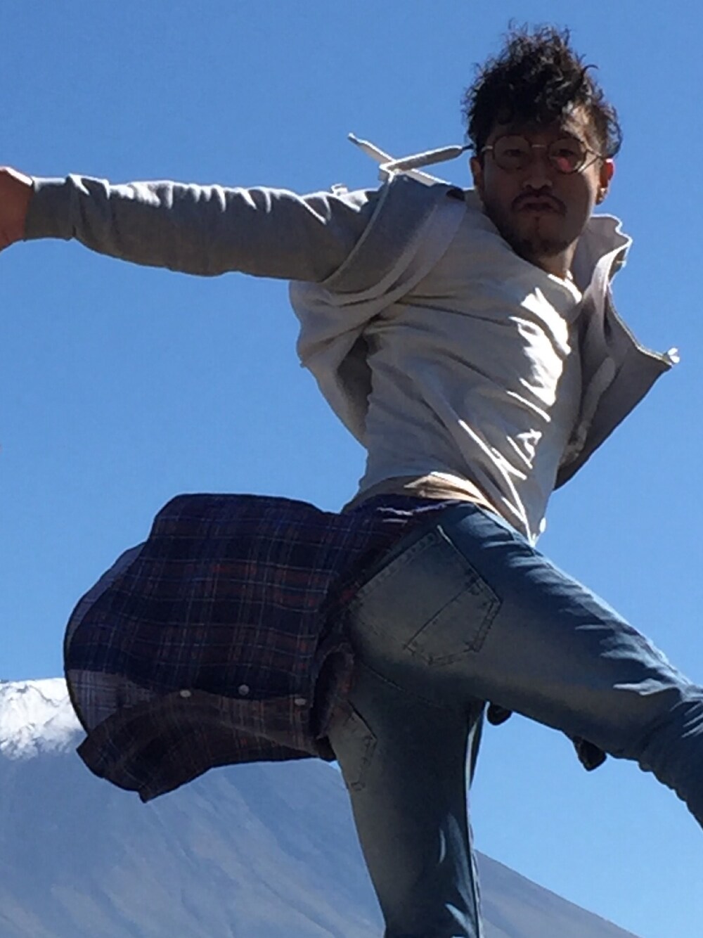 富士山をバックに高く高く飛んでみました。 足首が着地の際、ギュンってなり、未だに違和感を感じますが… 皆さんも、ジャンプにはお気をつけください!
