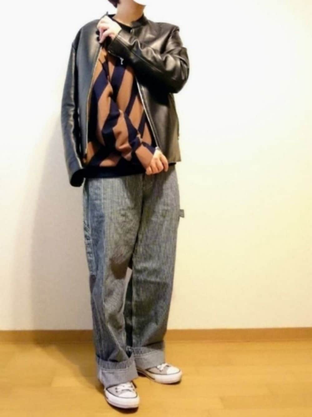マカのスウェット「バイアスストライプポンチ プルオーバー」を使ったコーディネート