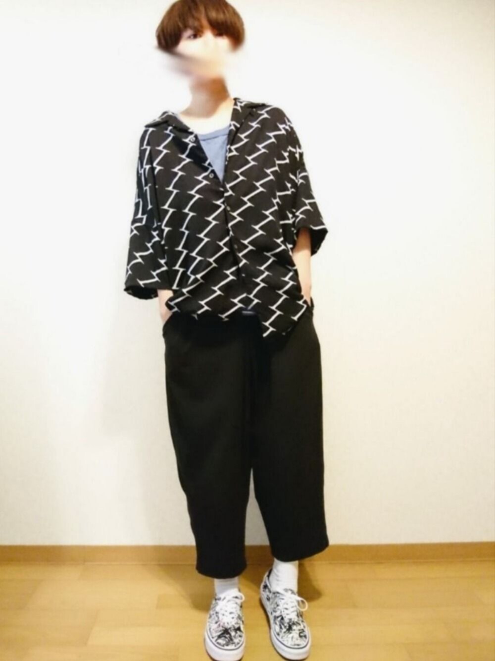 いつでも黒って イイです。 真夏ブラック 朝起きて … すごい日差し ライトブルーのタンクトップ 黒ベルトはたらさないで ちょっと落ち着いた感じに。 シャツを ラフにタックイン。 強い柄アイテム ひとつだと そこばっかり 目がいくので スニーカーも 色味の近い 柄物がいいかと△ 夏だから ハンカチのデザインも 大切 ⚡ よし~ 出かけょ!すぐ帰る! アイス 買いに コンビニ… いく。 それだ けです… 。
