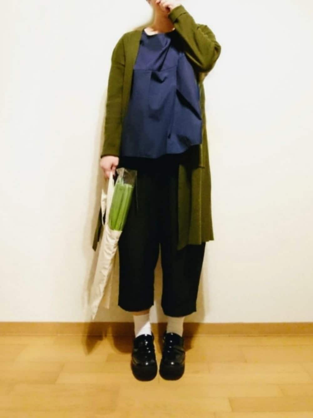 服の色味が変わるだけで 気持ちも変わるもので 急に お味噌汁と焼き魚と 白いごはん が食べたくなりました~。 だから … ネギです。 ネギと一緒に ネギカラーのカーディガン。 得意料理は… お味噌汁 。 くらい… 。