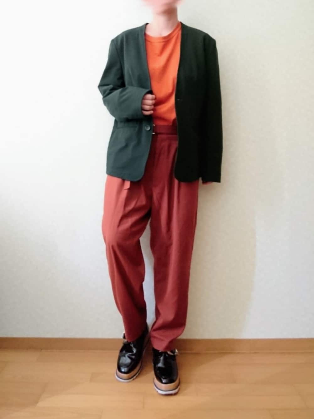 白とか多かったので 色が着たくなって グリーン × オレンジ × ブラウン Sense of placeのパンツ 本当に便利で 愛用させてもらっている ⚡⚡ ワタシでも 裾擦らない丈だし ベルトもついてて 便利だし そして お手頃価格 🕊️🕊️