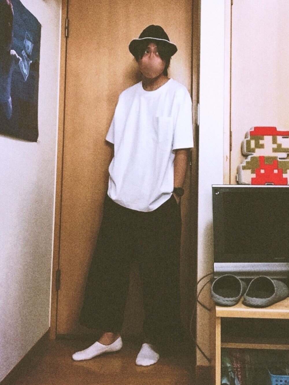 シンプルにまとめてみました。高校生らしく、安いもので。 GUの白ポケTは安いのにマジでいいです。また靴は履いてません