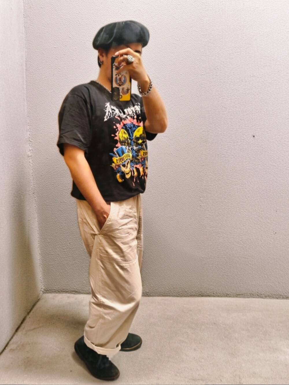 晴れ☀️20℃/8℃ 無骨ロックに生成りパンツで爽やかさをプラス