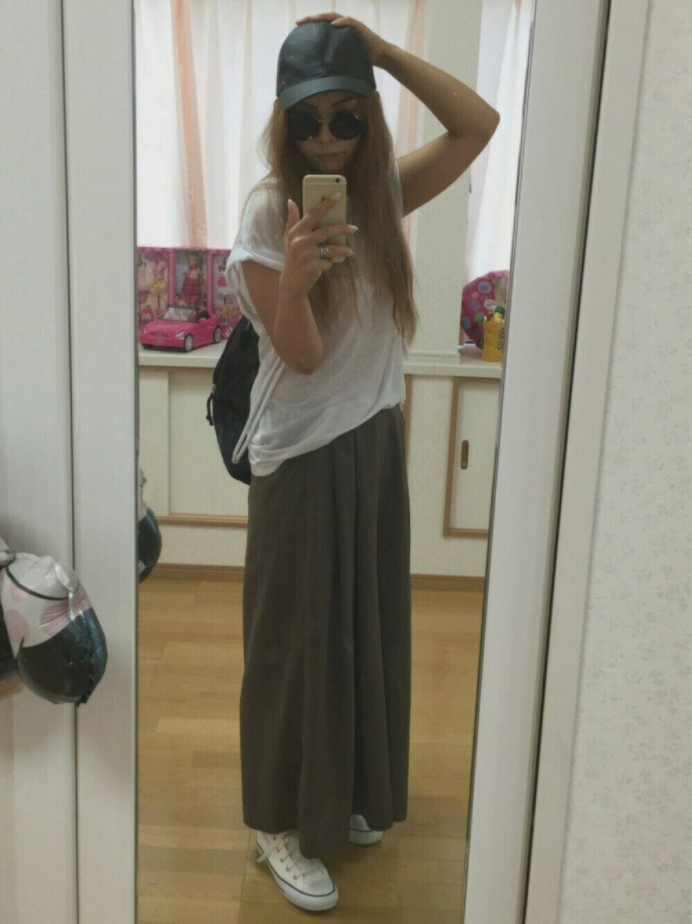 続いてキャップおさえポーズ😅 ドラフト参加もあるけど、やっぱり足元はスニーカーが一番です❤️ GUパンツは、旅行中に履きたくなってGU探して購入した物😋笑