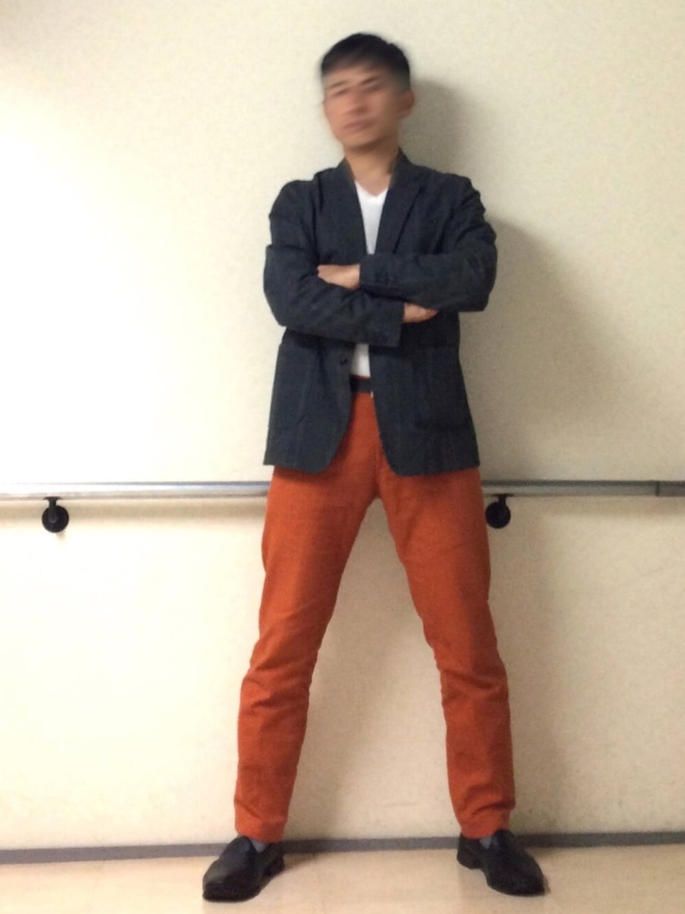 ジャケットが地味な色だと、 下まで暗い色にしてしまうとジジ臭くなってしまうため、明るいオレンジ色に。 …まあ…ジジイだからいいんですけど(苦笑)