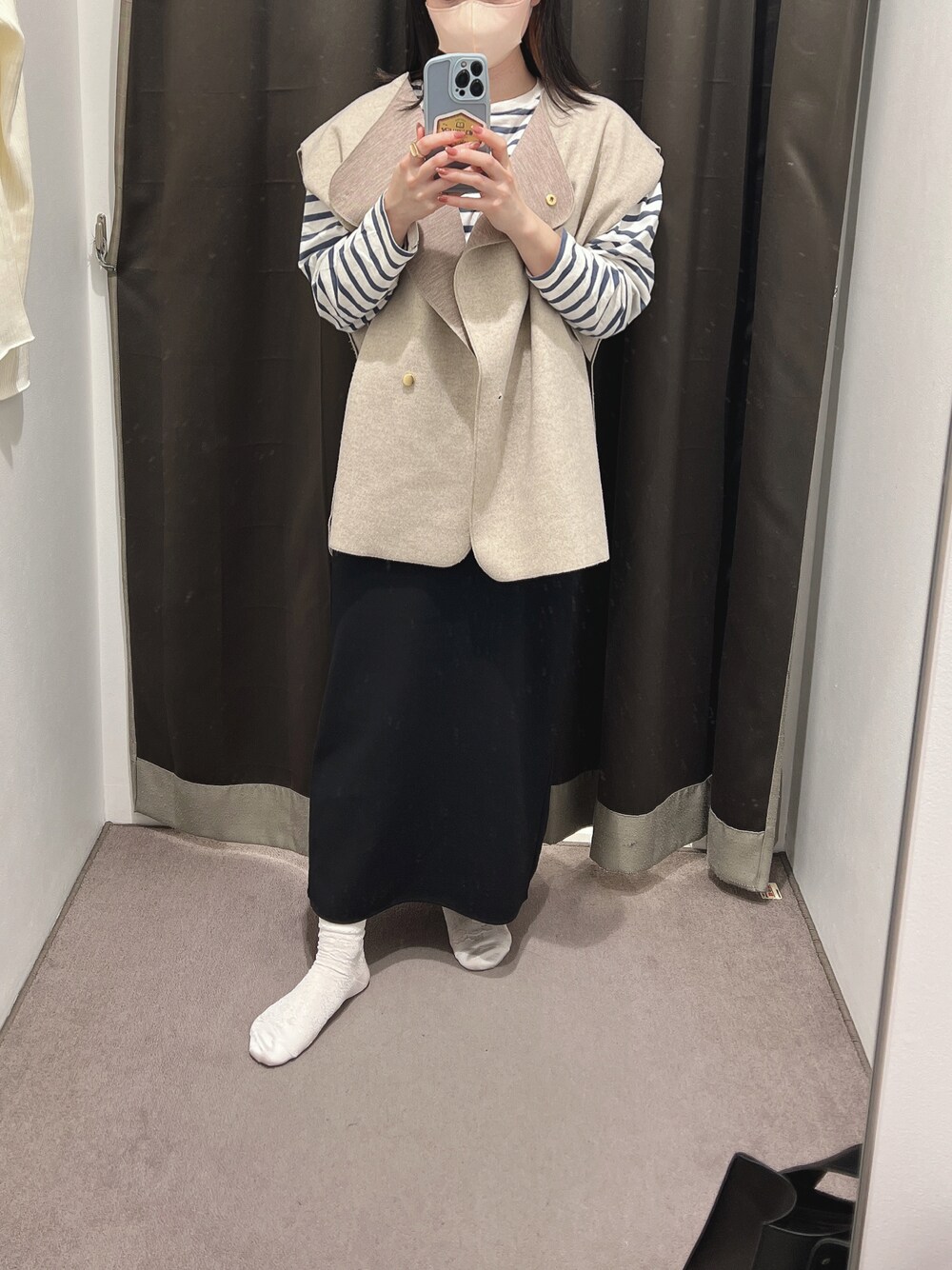 春だな〜🌸♡ UNIQLOのナロースカート万能✨ 買ってよかった〜〜〜〜 にしても自撮りっていつも以上に ずんぐりむっくりになる(笑) 悲しい😵💫