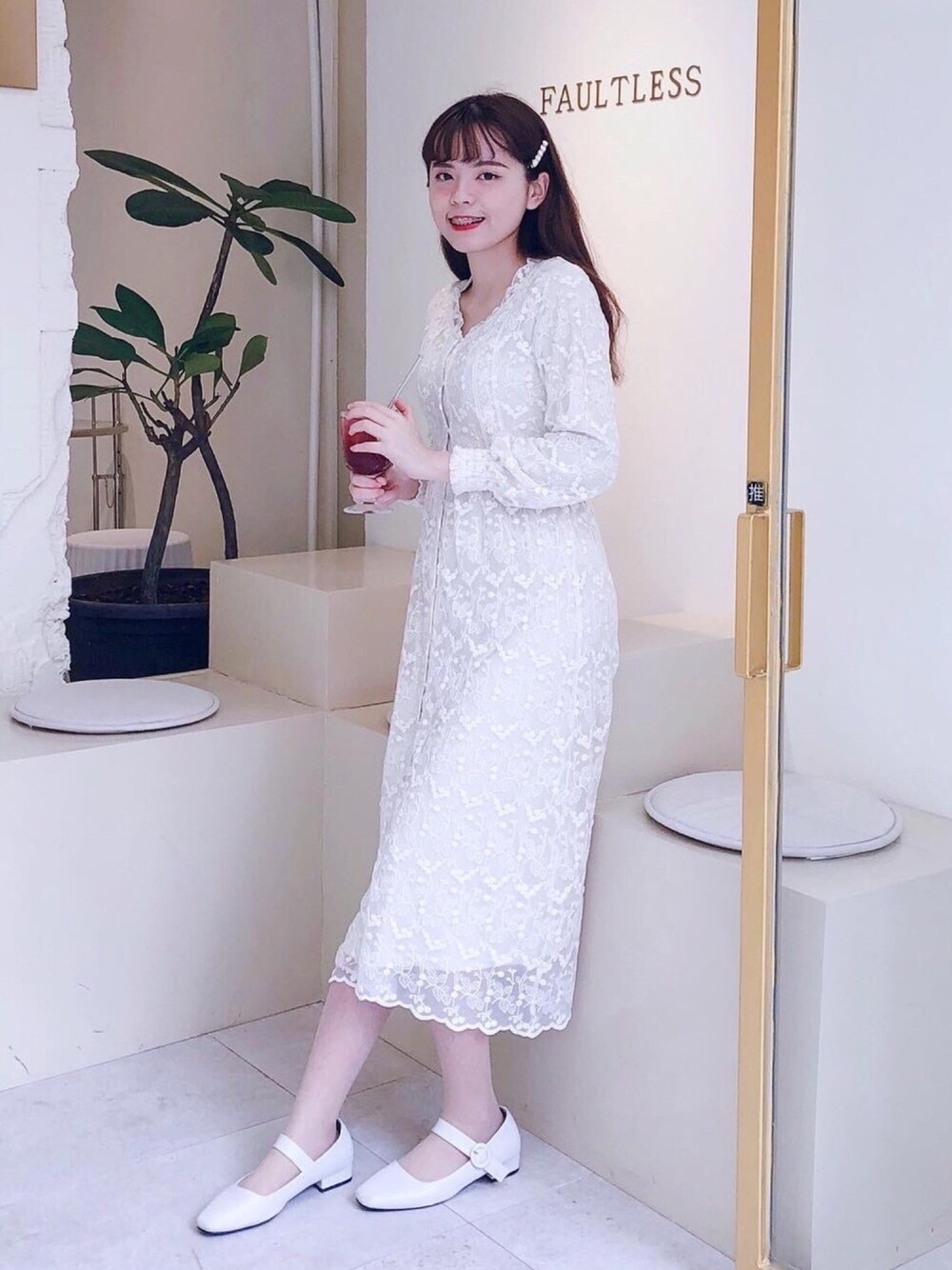 ホワイト系のワンピース/ドレスを着用したレディースの冬コーディネートの1枚目の写真