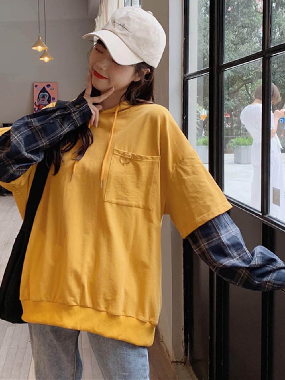 ゆったり仮二点チェック柄切り替えプルオーバーパーカー 商品番号:1712 商品金額:¥3,417 詳細はこちら: http://bit.ly/2TcOAdp