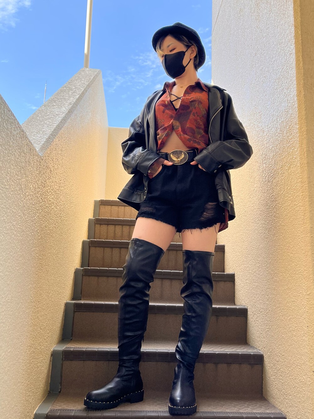出遅れました💦 ケンさん主催のライダースフェス2022 1投目は、オーバーサイズのライダース✌️ 元気なぱっつんぱつんの太もも、 初披露ぢゃ❣️ 皆様のライダースコーデめちゃくちゃ見たいんだけど、ちょいバタバタしております😅 皆様のとこには、夜🌛忍びに行きます🥷