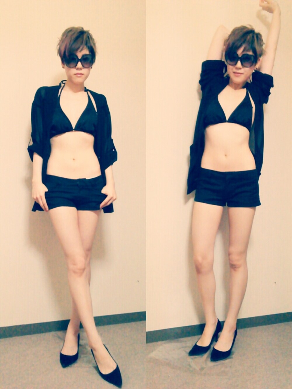 夏なんで……大胆にいきまっしょーい! tops:moussy テーラードJK tops:moussy 水着 pants:どっかの shose:どっかの accessory:moussy