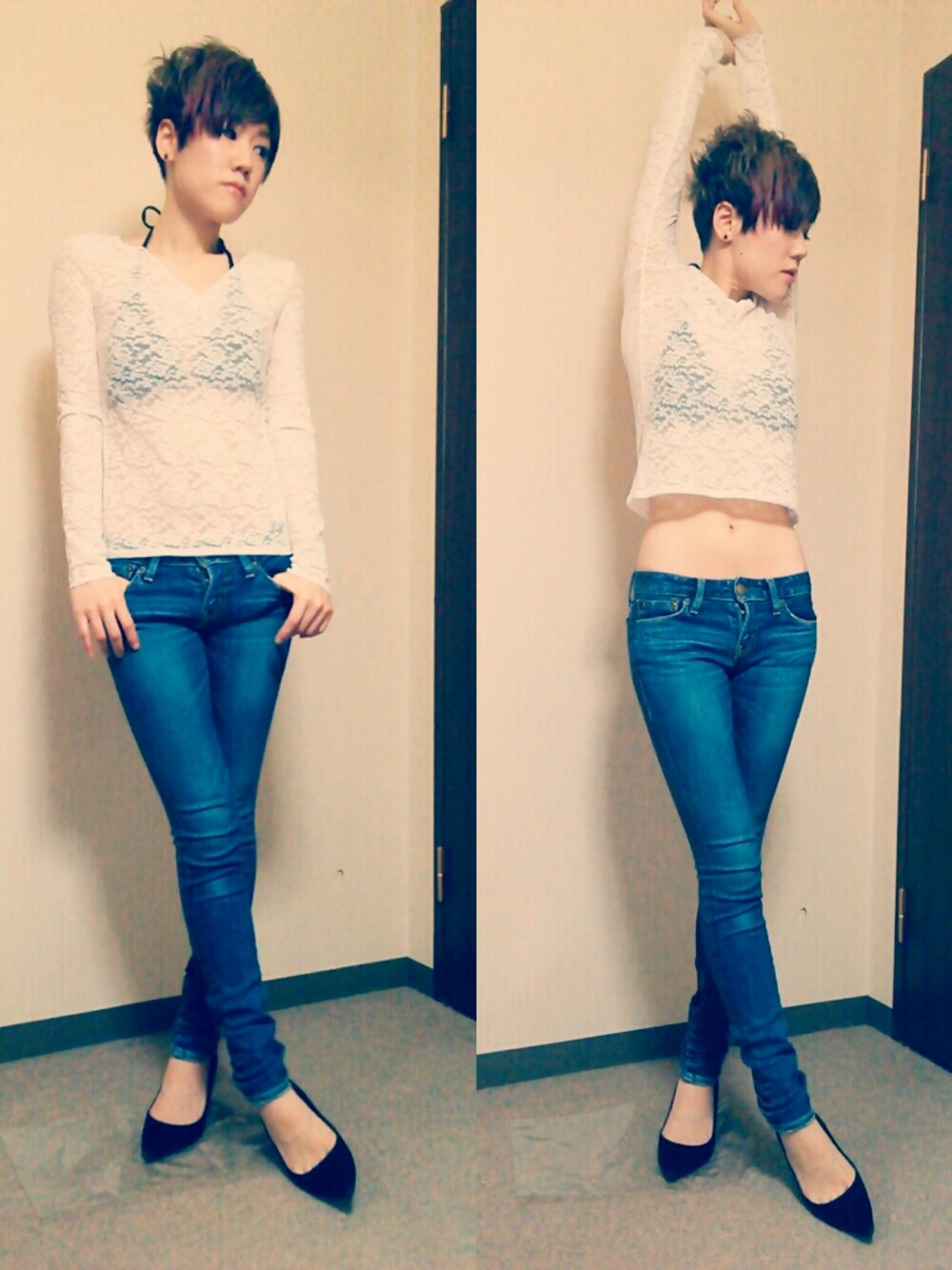 losboyのTシャツ/カットソー「シースルー刺繍入りトップス」を使ったコーディネート