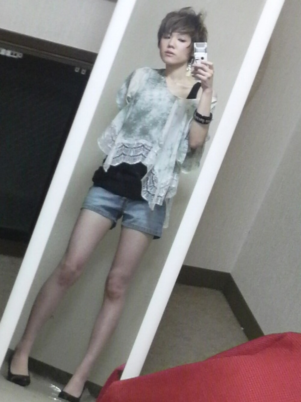 足出すの、最近の習慣になりましたwww 最近、足出しまくっています(笑) OSMOSISの新作です☆ ほど良いレース感がたまんないですwww Right-onのタンクトッフ゜はかなり重宝です! 結構、胸部分に深みがあるので 胸元部分が綺麗にみえます!