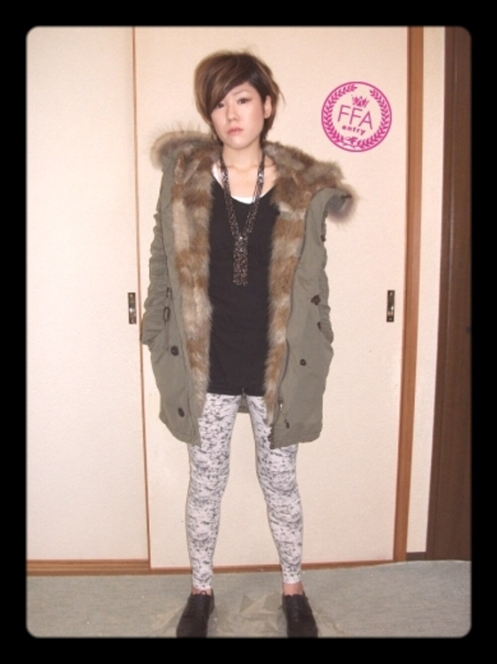 モノトーンにファーモッズコート。 この度は、フクログ3周年記念、おめでとうございます!!!! この度は、皆さんと一緒に盛り上がろうと思い、このプロジェクトに参加させて頂きました!! シンプルが大好きなので、モノトーンでよくまとめちゃうくせがあるのですが 今回はプラスでファーを盛りだくさん(笑)www モッズコートの裏地がファーになっていて 最近、風邪をひいた私には、お洒落をしながら、体を温められるので すんげェーーー重宝(笑)www