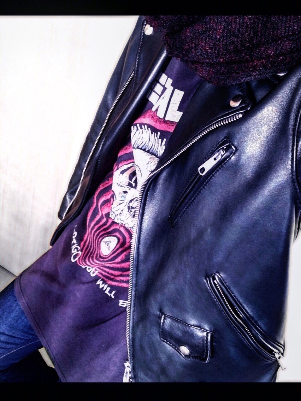 shinのライダースジャケット「BY シープ ダブルライダースジャケット ◆」を使ったコーディネート