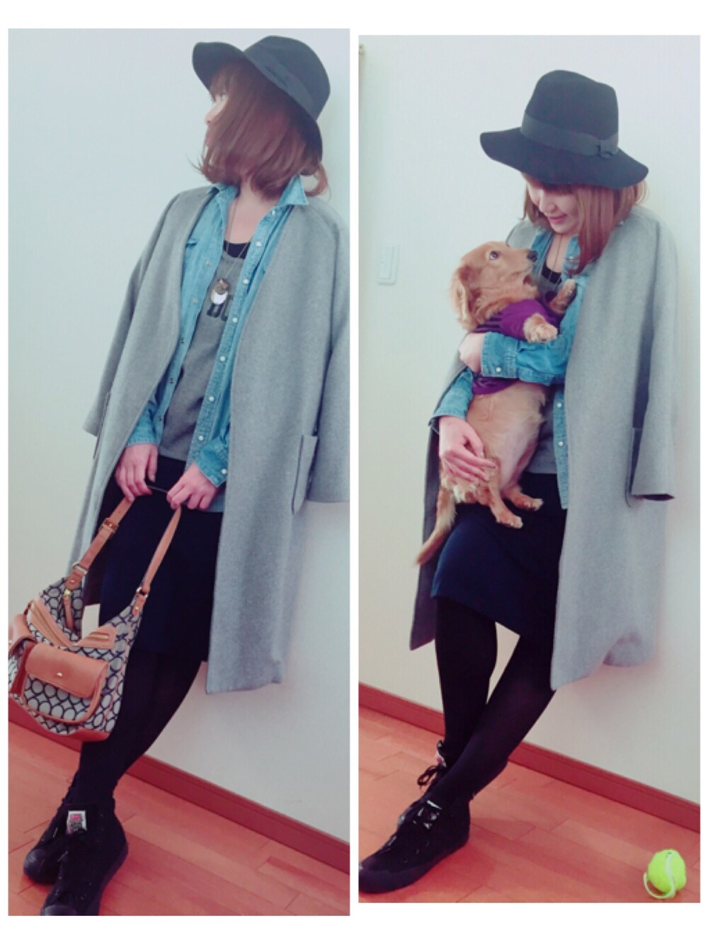 いつもと色味が一緒な感じやけど古着シャツを着てみた🤓💨 もうこの先寒くないのかな⁉️ 今日はあったかかったのでモデルさんとかがよくやってるアウター肩に掛けるパターンのやつです✨ 自分がやったら二人羽織みたいに見えるなぁ💦 そして何故か犬登場verも一緒に笑 「なんなん?どしたん?」て顔で見られてる😂