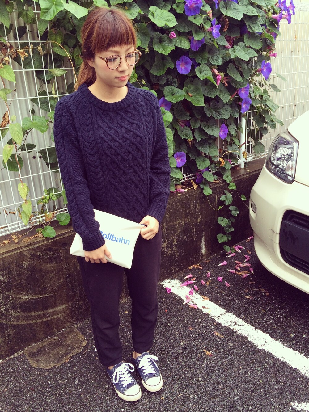 雨のちょっと肌寒い日のランチコーデ🍴 ざっくりニット1枚にスニーカーでラフに♬