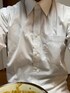 白シャツでカレーうどん食べてみました。わざと白シャツにかかるようにおもいっきりね