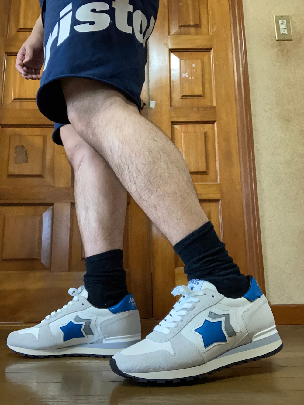 アトランティックスターズのホワイト ビブラムソールです すね毛は気にしないでください💇♂️